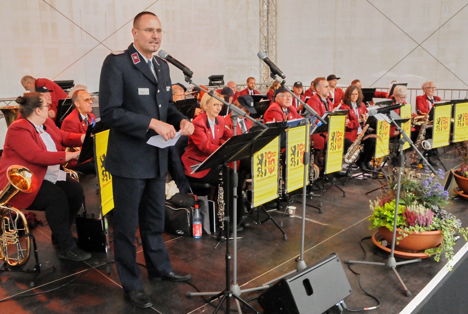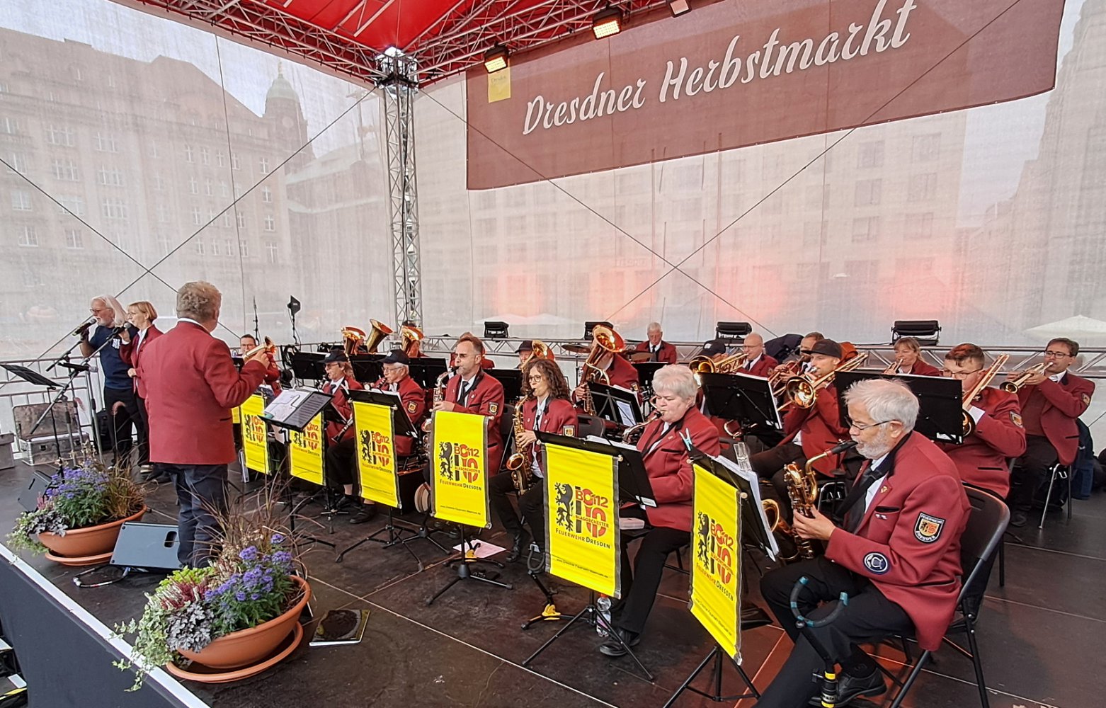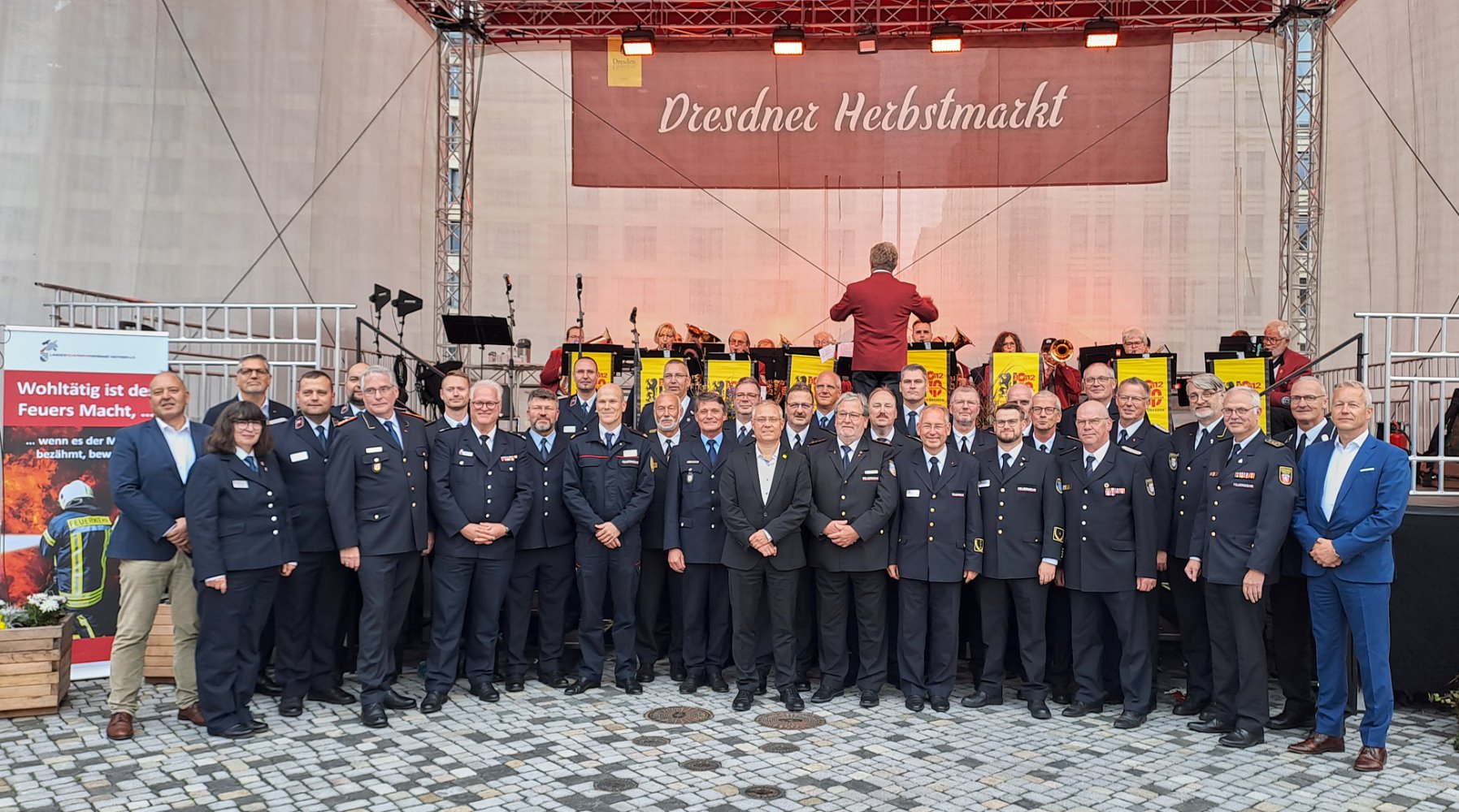 Am 26. September 2025 übergab die BMW Group auf dem Dresdner Altmarkt im Rahmen des Herbstmarktes feierlich neue Dienstfahrzeuge an die Landesfeuerwehrverbände. LFV-Präsident Gunnar Ullmann und Dresdens Bürgermeister Jan Pratzka begrüßten die Gäste. Für unseren konzertanten Auftritt erhielten wir viele lobende Worte von den Abordnungen aus ganz Deutschland.