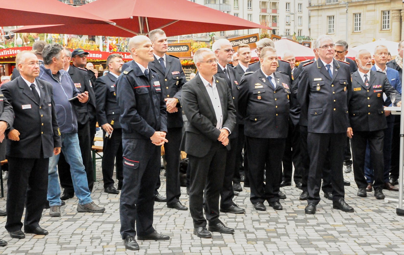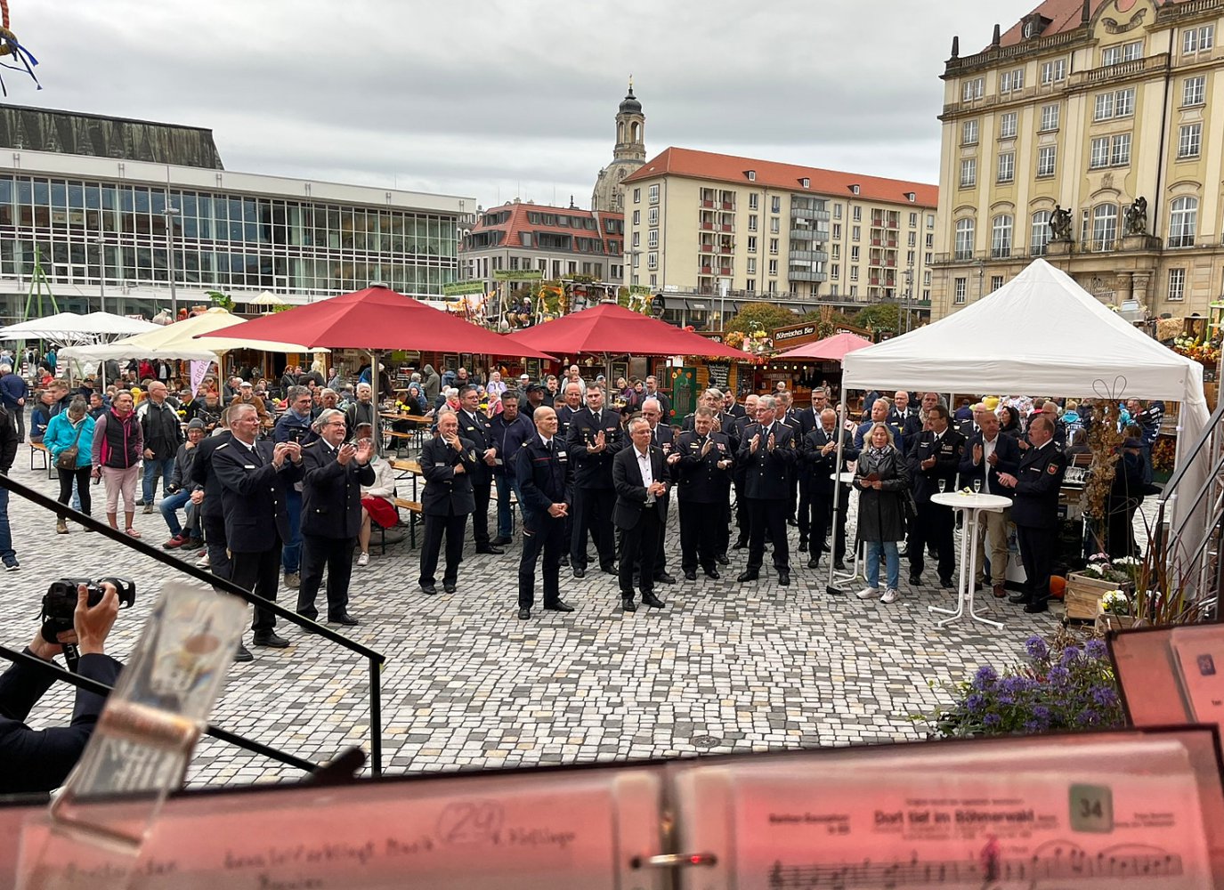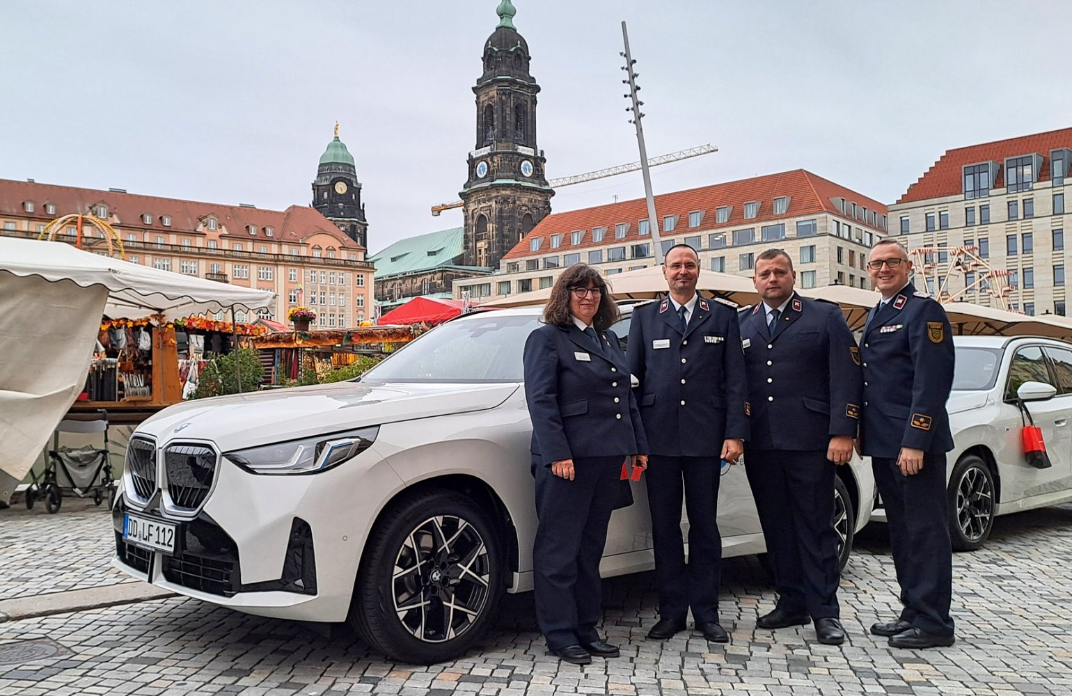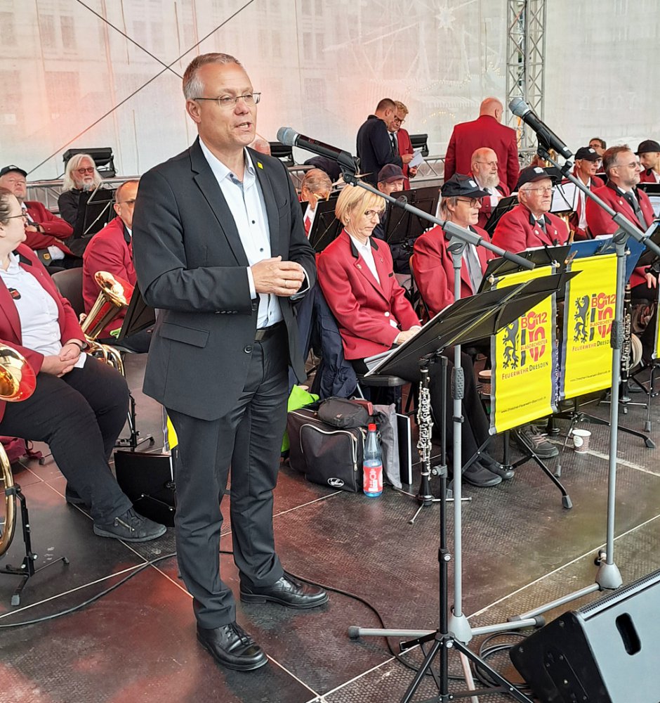 Am 26. September 2025 übergab die BMW Group auf dem Dresdner Altmarkt im Rahmen des Herbstmarktes feierlich neue Dienstfahrzeuge an die Landesfeuerwehrverbände. LFV-Präsident Gunnar Ullmann und Dresdens Bürgermeister Jan Pratzka begrüßten die Gäste. Für unseren konzertanten Auftritt erhielten wir viele lobende Worte von den Abordnungen aus ganz Deutschland.